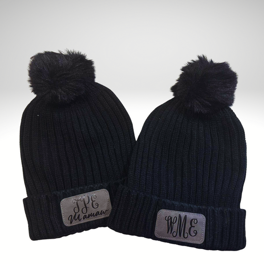 Monogrammed Pom Pom Toboggan : Black / Grey