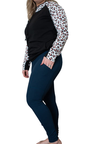 Yoga Band Pocket Leggings: Black, Plum, Pink, Navy- Misses, Plus, Extended Plus