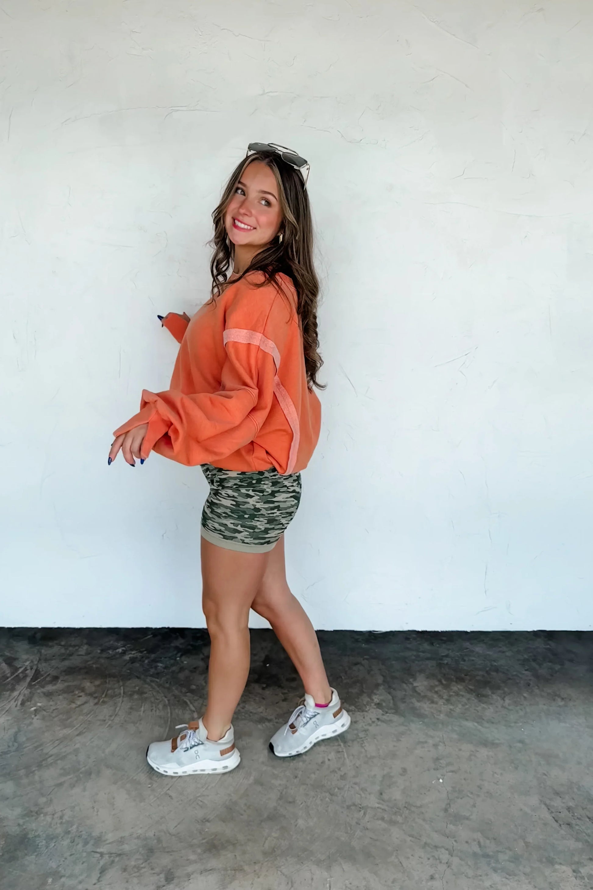 We spared no attention to detail in our new mineral washed sweatshirt! This forever timeless pullover is a slouchy, relaxed fit with exposed seaming, cute split cuff hem and ribbed trim detail! Has super soft "sweatshirt" feel on the inside!