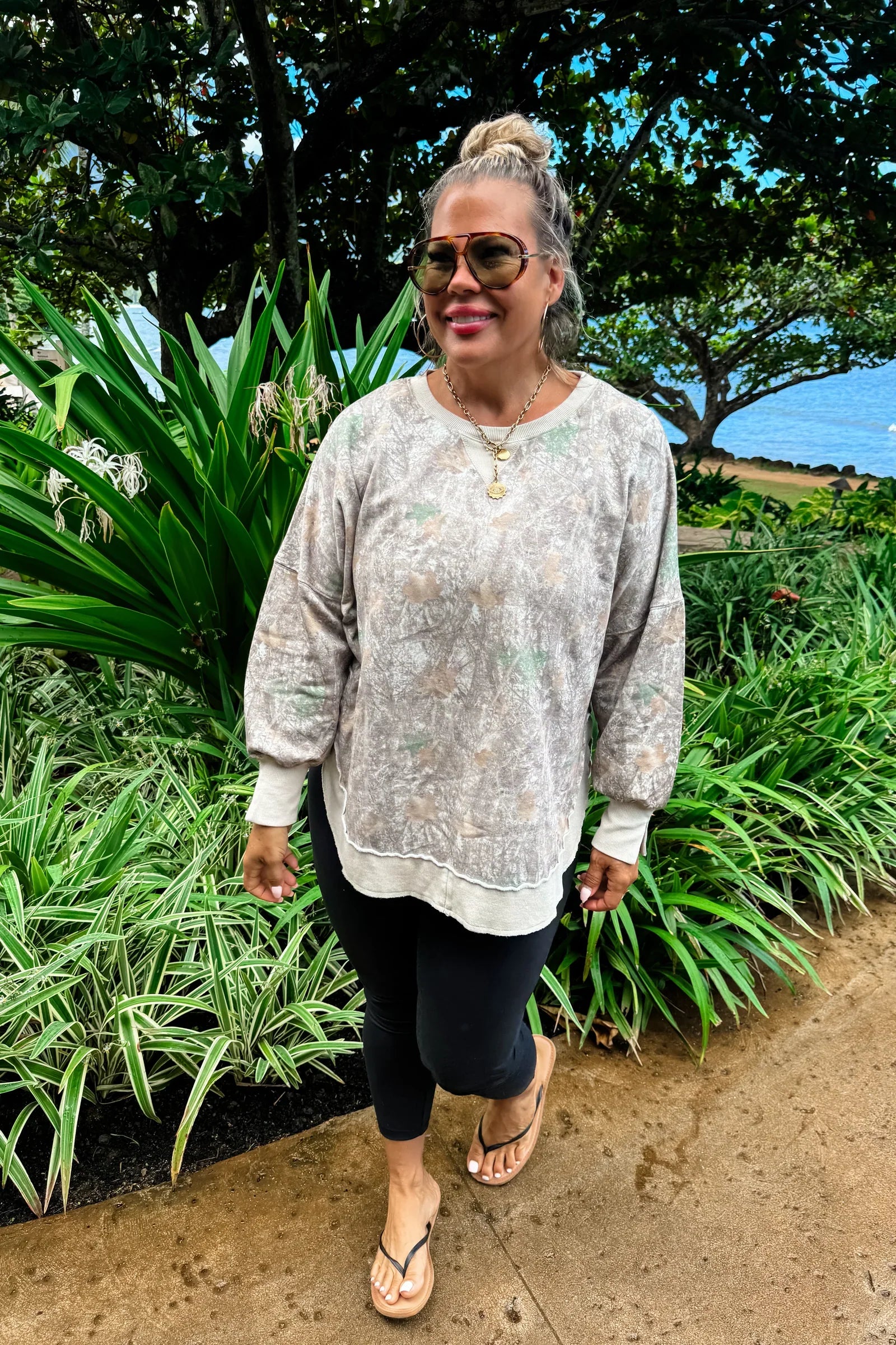 The perfect washed cotton flattering sweatshirt that everyone needs! Faded “vintage” colors. Features flattering rounded front and back hem with side slits!