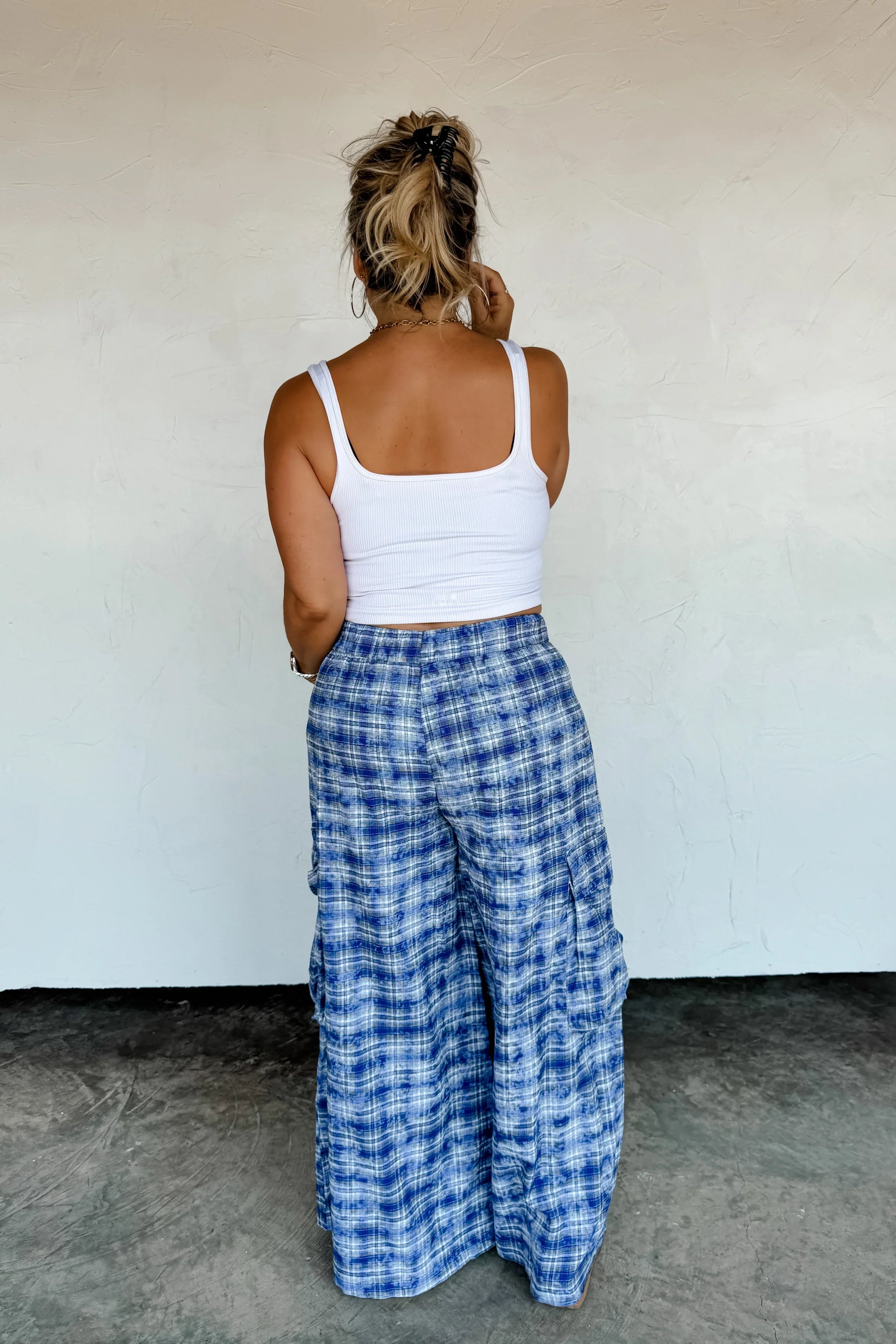 The perfect in style, pull on and go pant! These bleached, boxer style pants are designed with an elastic waistband, front and side leg oversized roomy pockets, and a wide urban style legs. These pants are made for movement, lounging, and everything in between. Features faux front pockets and a working tie string waistband.